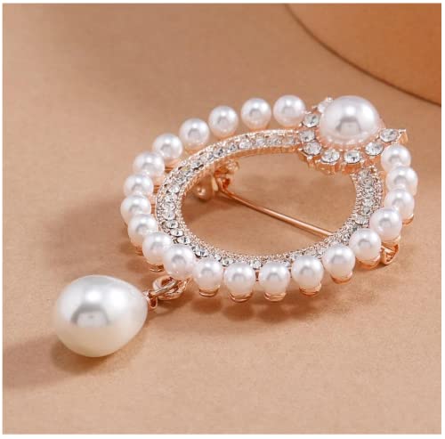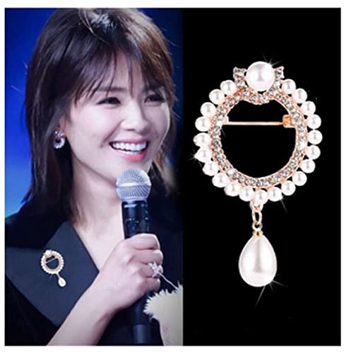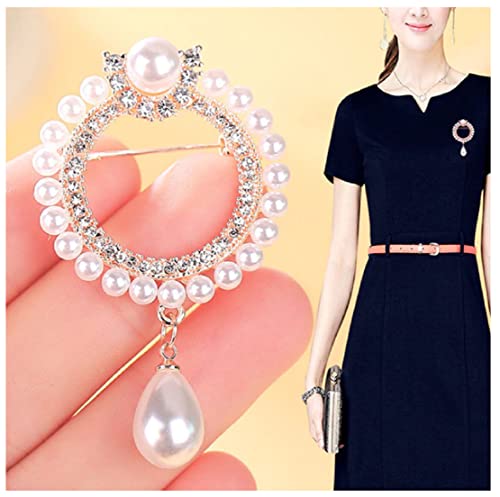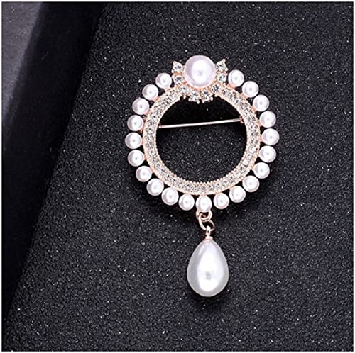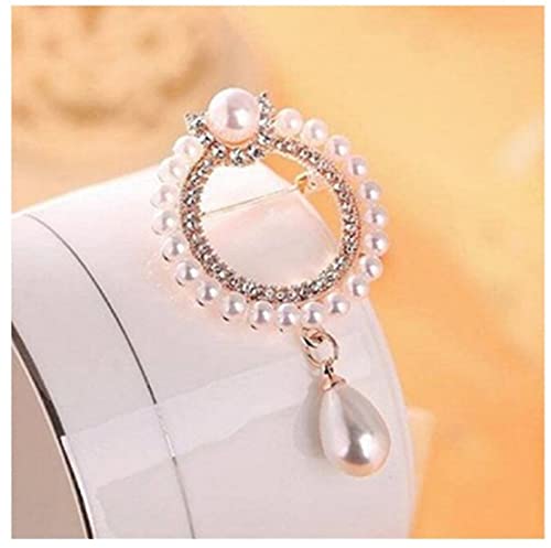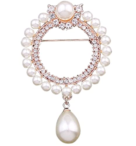 Generic - دبوس زينة مطلي ذهب ديكور حجر الراين ولؤلؤ صناعي مستدير بروش نسائي