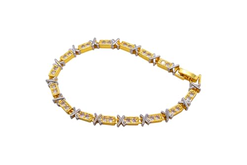 Generic - سوار سلسلة مطلي بالذهب مرصع بالالماس مع مشبك للاغلاق، مقاس واحد - ذهبي FA1