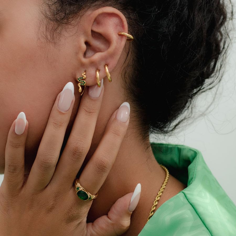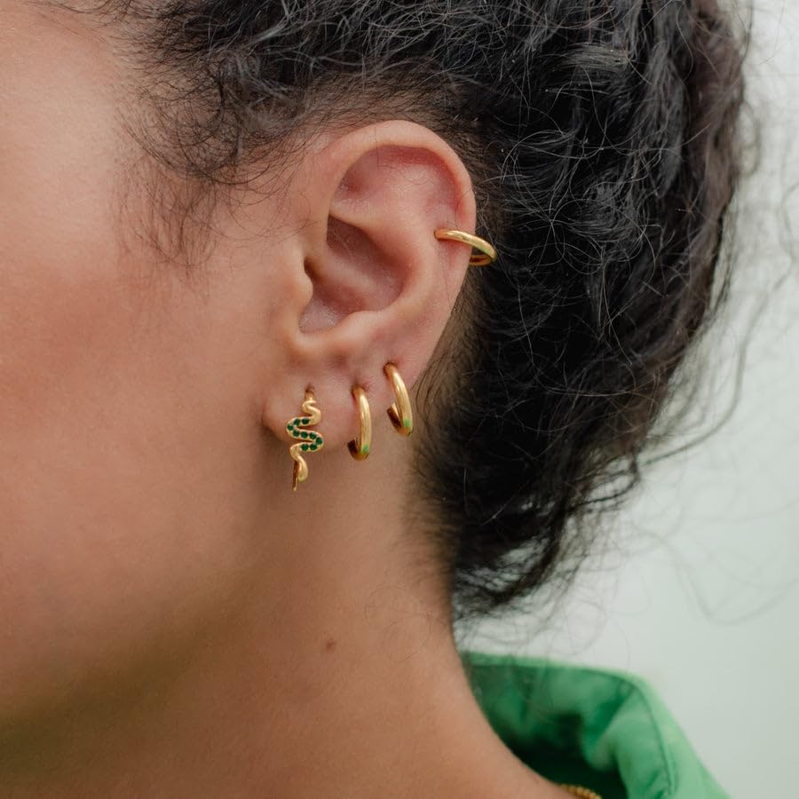 Generic - أقراط أذن متسلقة مطلية بالذهب مع كريستالات خضراء، تصميم على شكل حرف S، زوج