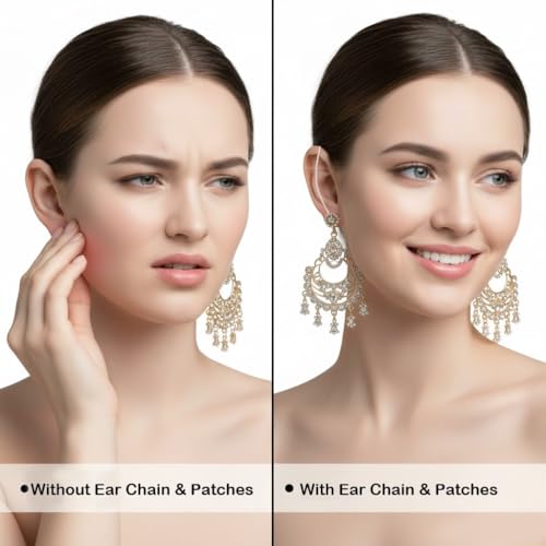 - المجموعة المطلوبة: تتضمن هذه العبوة قطعتين من سلاسل الأذن، بالإضافة إلى 20 لاصقاً لدعم الحلقان الثقيلة.