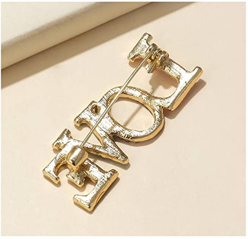 Generic - دبوس زينة عبارة مطلي ذهب ديكور حجر الراين بروش نسائي
