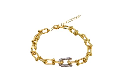 Generic - سوار للنساء بتصميم سلسلة بحلقات مطلية بالذهب مع مشبك لوبستر، مقاس واحد - ذهبي FA1
