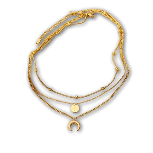 Generic - قلادة على شكل قمر مطلية بالذهب - دلاية أرجوانية من ثلاث طبقات بتصميم هلال معقد، عصرية وخفيفة الوزن، مثالية للنساء اللواتي يبحثن عن اكسسوارات يومية أنيقة.