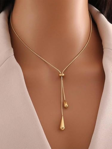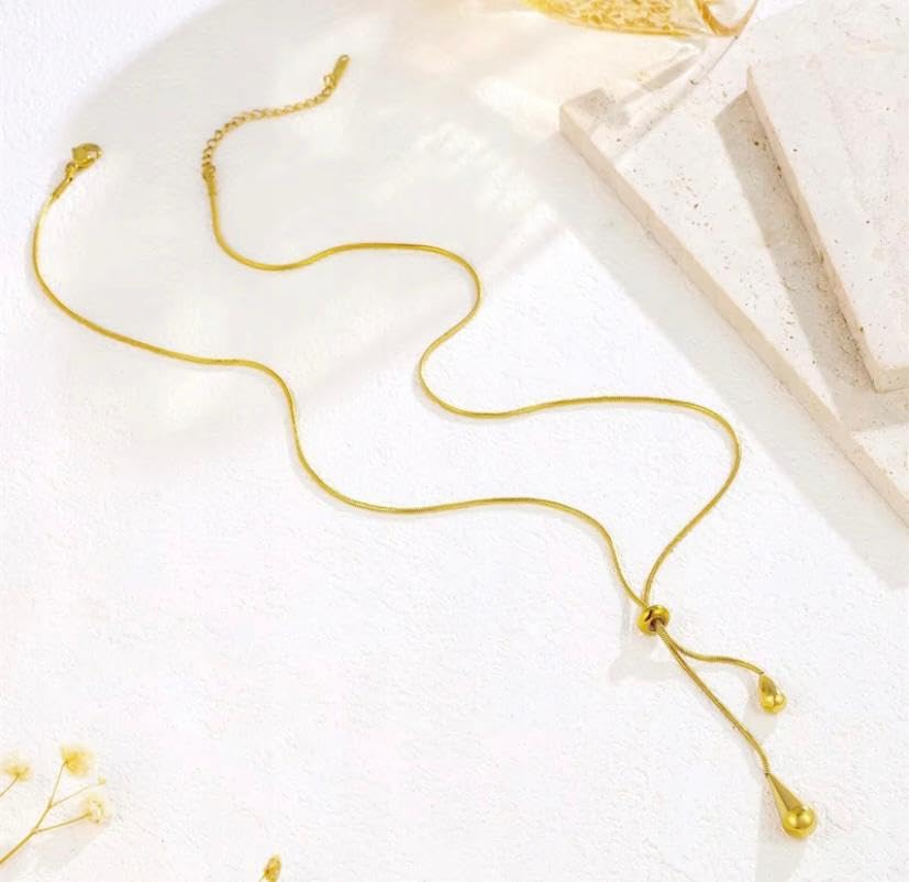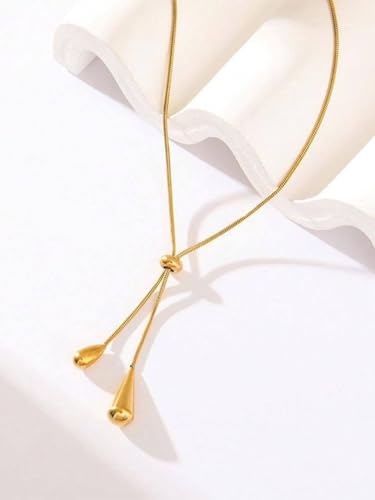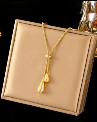 Generic - قلادة مطلية بالذهب مع تصميم قطرات متدلية، سلسلة أنيقة للنساء، لون ذهبي