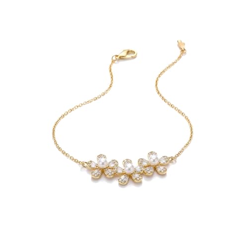 Generic - قلادة زهرة اللؤلؤ مطلية بالذهب - تصميم زهري انيق مع لؤلؤ وتفاصيل زركون متوهجة، خفيفة الوزن وخالية من التهيج للبشرة الحساسة.