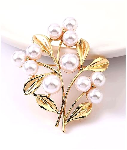 Generic - دبوس مطلي ذهب ديكور لؤلؤ صناعي بروش انيق