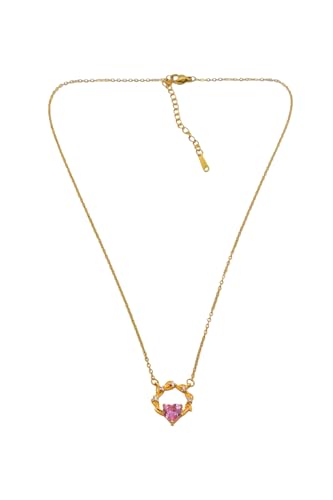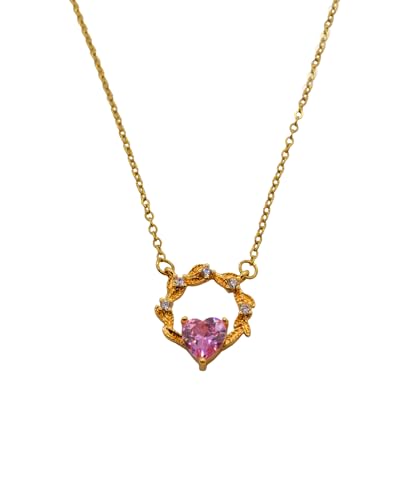 Generic - عقد مطلي بالذهب بدلاية على شكل قلب بينك من الاحجار الكريمة للنساء - ذهبي