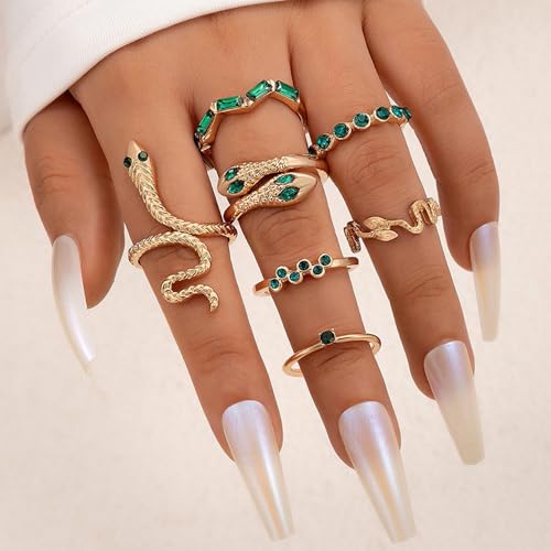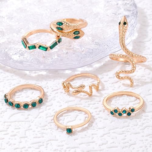 Generic - طقم خاتم مطلي بلون الذهب للنساء - 6 خاتم بوهيمي - 1 طقم