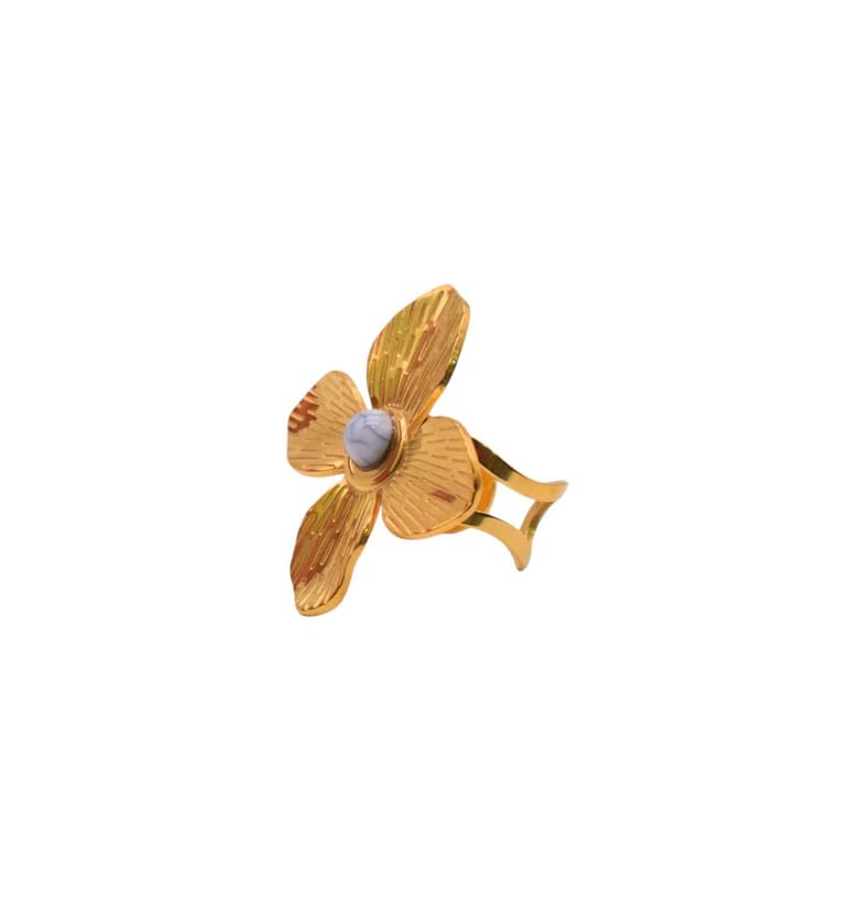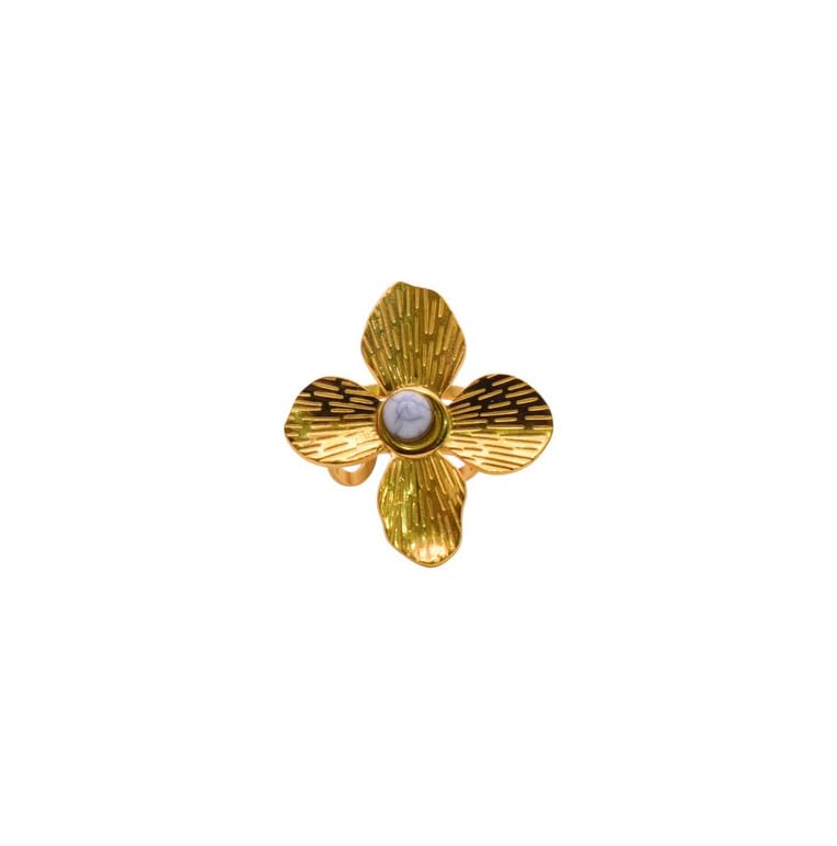 Generic - خاتم مطلي بالذهب بتصميم زهرة للبنات - ذهبي وابيض