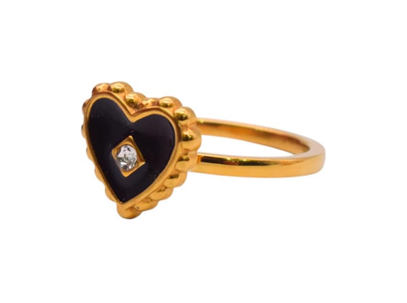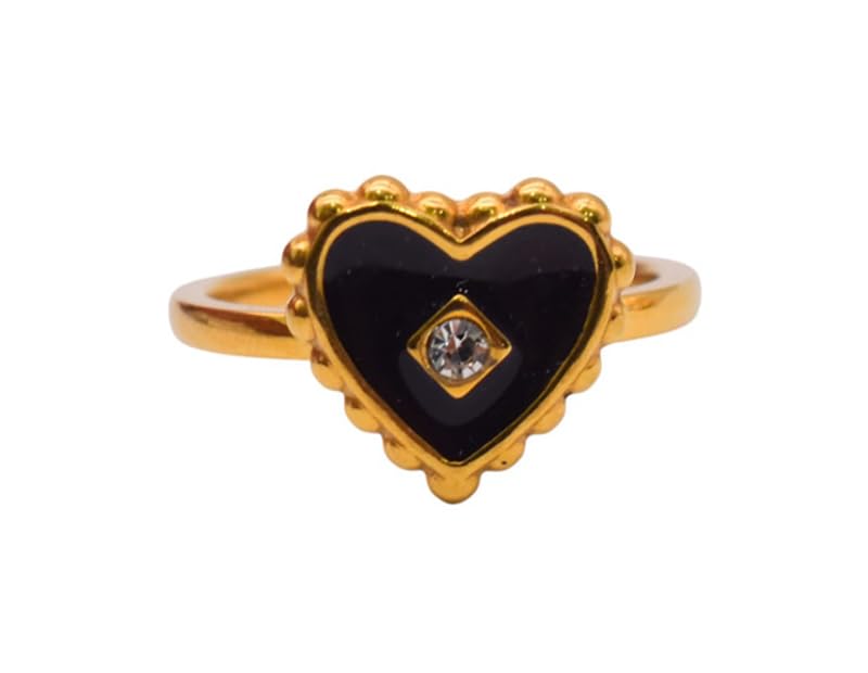 Generic - خاتم مطلي بالذهب بتصميم قلب للبنات - ذهبي واسود