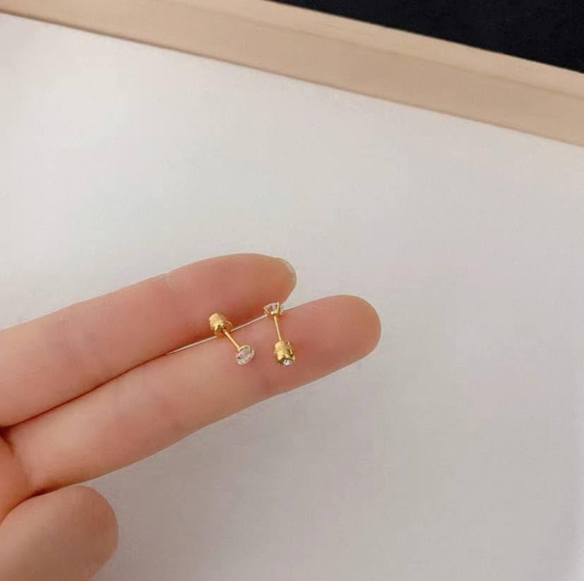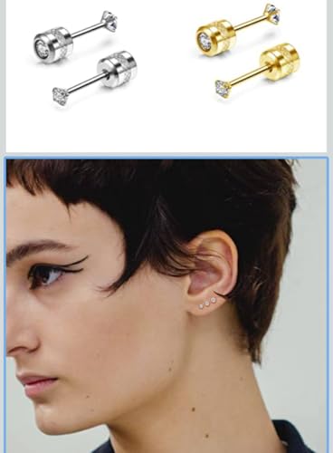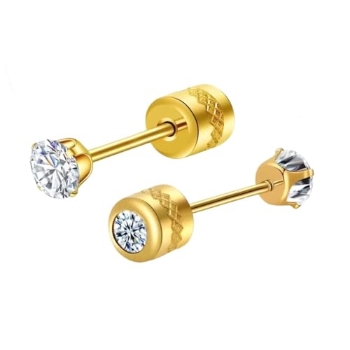 Generic - قرط أذن مطلي بالذهب (قطعة واحدة) للرجال والنساء - زركونيا مكعبة مستديرة 3 ملم، فولاذ مقاوم للصدأ مضاد للحساسية، مجوهرات عصرية للجنسين