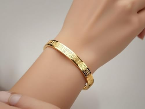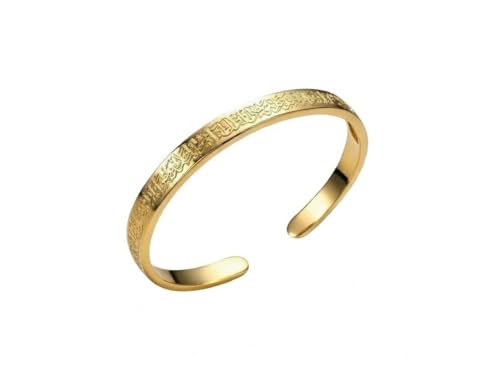 Generic - سوار عريض من الستانلس ستيل مطلي بالذهب بالخط الاسلامي، تصميم مفتوح قابل للتعديل، سوار محفور بخط عربي، مجوهرات انيقة مستوحاة من العقيدة للنساء