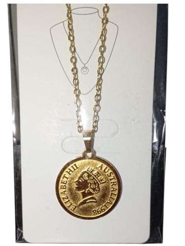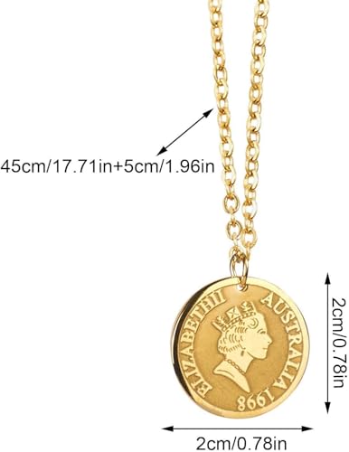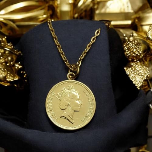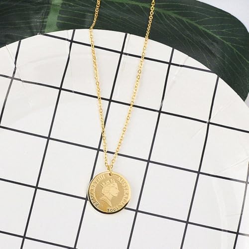Generic - سلسلة نسائية من الإستانلس ستيل مطلية بالذهب – تصميم عملة الملكة إليزابيث الثانية – مقاومة للصدأ ومضادة للحساسية – هدية أنيقة للسيدات