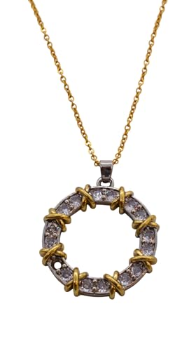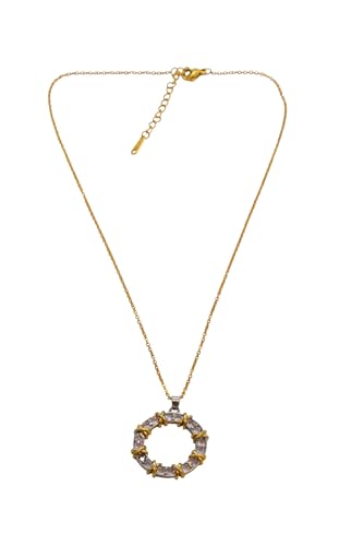 Generic - عقد بقلادة دائرية مفتوحة من الستانلس ستيل مطلي بالذهب ومرصع بالكريستال للنساء - ذهبي