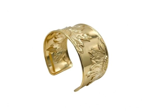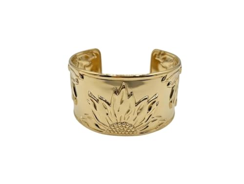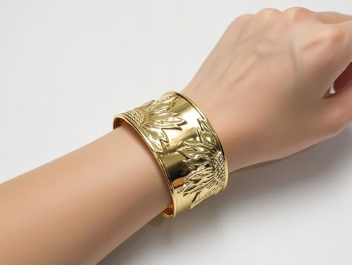 Generic - سوار عريض من الستانلس ستيل مطلي بالذهب بتصميم مفتوح قابل للتعديل وزخارف عباد الشمس مفصلة كبيرة الحجم، لمسة نهائية مطروقة منسوجة يدويا، مجوهرات جريئة للنساء