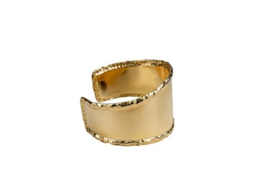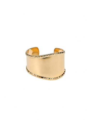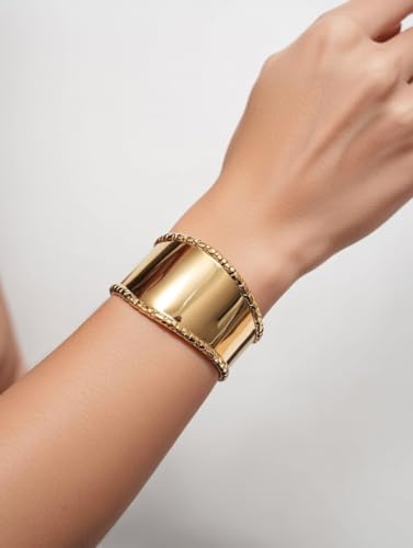 Generic - سوار عريض من الستانلس ستيل مطلي بالذهب، تصميم مفتوح قابل للتعديل، حواف مزخرفة مطروقة، سوار عريض مصقول للنساء