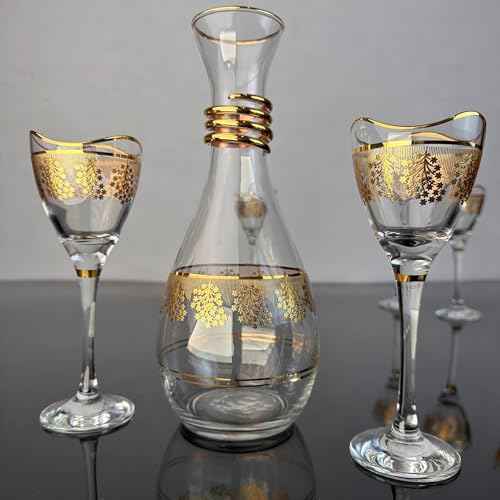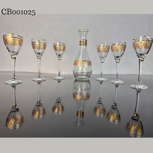 Generic - طقم كاسات فراي تركي مطلي بالذهب – قارورة و6 كاسات – 7 قطع