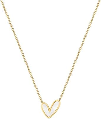 Generic - عقد بقلادة على شكل قلب ابيض مطلي بالذهب، طول السلسلة 45 سم
