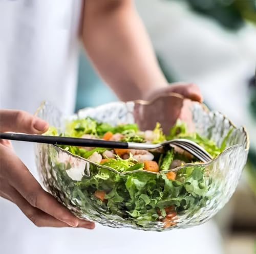 Generic - وعاء سلطة بحواف ذهبية - وعاء زجاجي شفاف فاخر مع حافة ذهبية لامعة ونمط مزخرف مصقول، مثالي للسلطات او الفواكه الطازجة، بلمسة نهائية بحافة مموجة رقيقة تضيف سحرًا بصريًا.