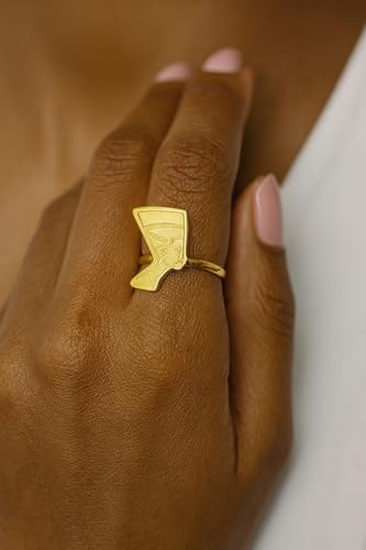 Generic - خاتم ذهبي، تصميم مصري قديم، للهدايا التذكارية .معدن ستانلس ستيل ذهبي اللون، خاتم قابل للتعديل، مجوهرات فرعونية-قطعة واحدة