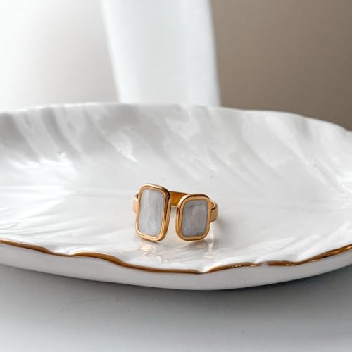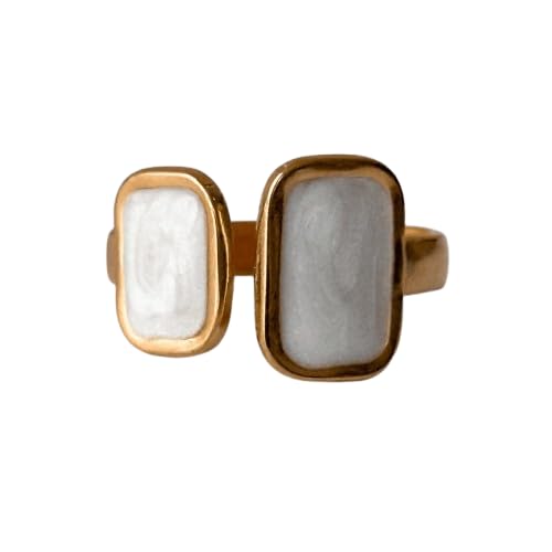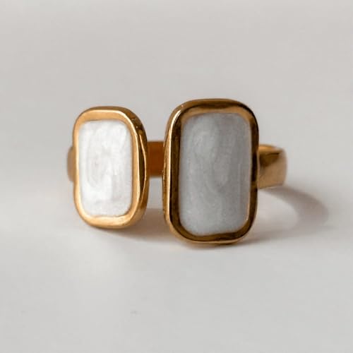 Generic - خاتم ذهبي بحجرين مستطيلين، تصميم عصري، حجر أبيض ورمادي