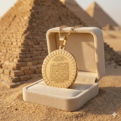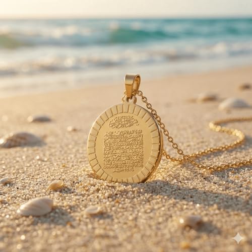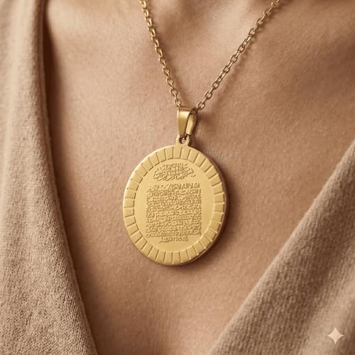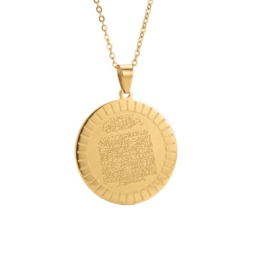 Generic - سلسلة "آية الكرسي" ذهبية مستديرة من الستانلس ستيل - سلسلة بدلاية عملة محفورة بآيات قرآنية للحفظ والتحصين - مجوهرات إسلامية راقية مقاومة للصدأ