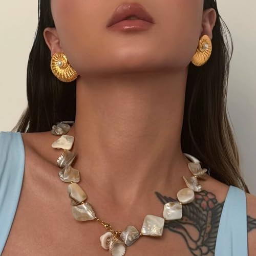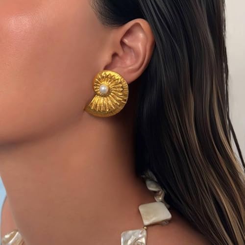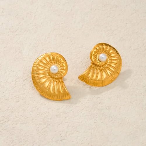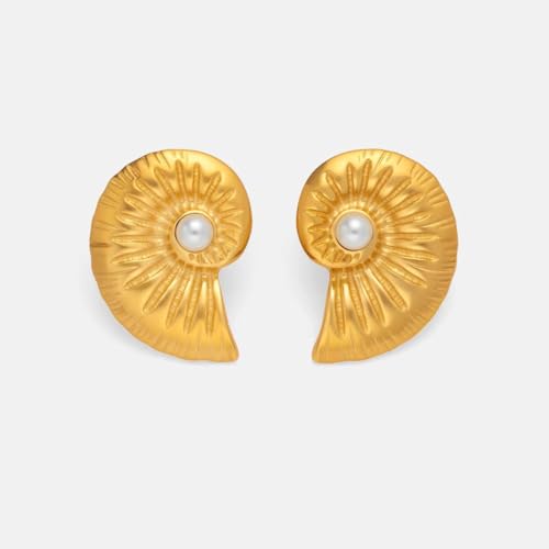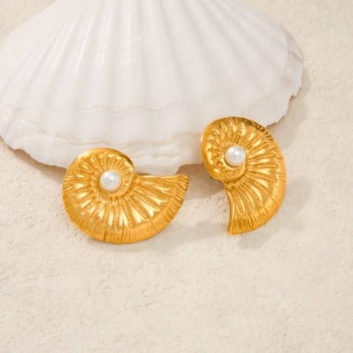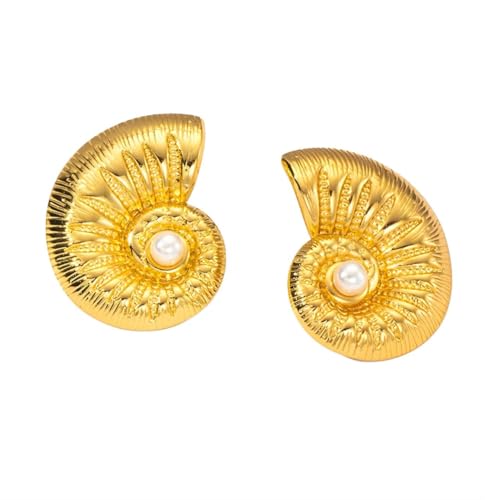 Generic - اقراط ذهبية مرصعة بالصدف مع لؤلؤ ابيض شفاف - تصميم كلاسيكي انيق للنساء، مجوهرات مميزة خفيفة الوزن