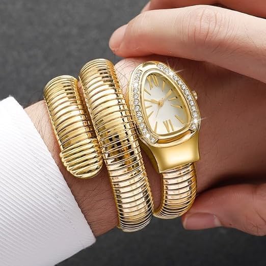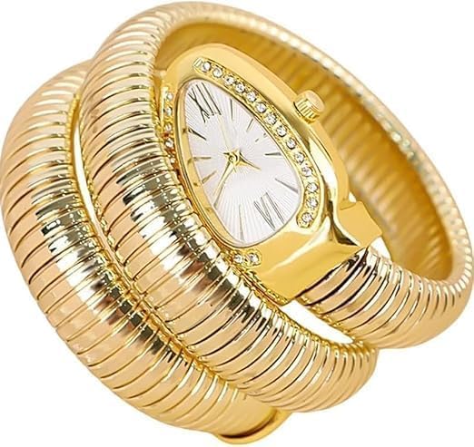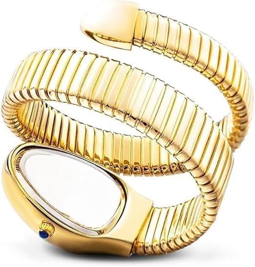 Generic - ساعة يد ذهبية بتصميم حلزوني مستوحى من شكل الثعبان بإطار معدني ذهبي بنظام عرض انالوج وحركة كوارتز مقاومة للماء بمينا أبيض وأرقام رومانية أنيقة للنساء