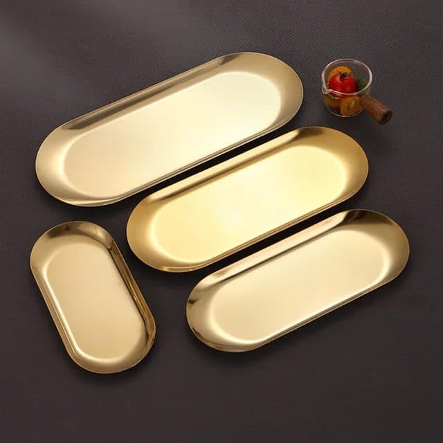 Generic - صينية تقديم بلون ذهبي، طقم من 4 قطع