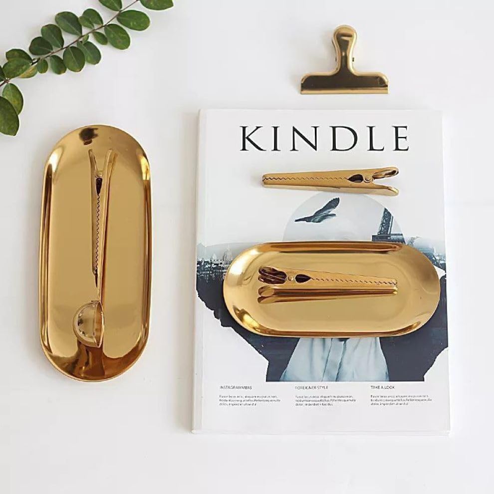 - طقم صواني تقديم حلوى وسويشي بلون ذهبي مكون من 4 قطع.