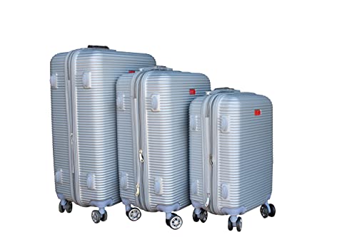 GOLD - طقم شنط سفر من 3 قطع، فضي وابيض Bo260, أبيض فضي, مجموعة حقائب السفر، بلاستيك