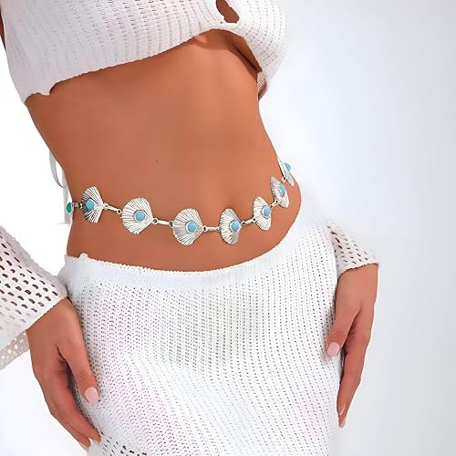 Generic - سلسلة خصر ذهبية مع احجار تركواز - مجوهرات جسم بوهو انيقة للشاطئ او المهرجانات او الارتداء اليومي، تصميم خفيف الوزن وقابل للتعديل