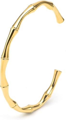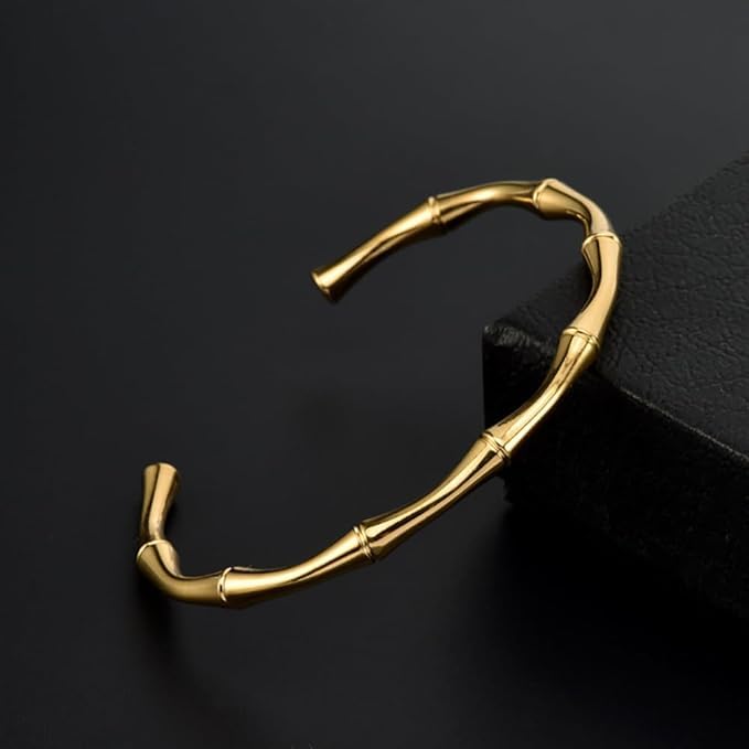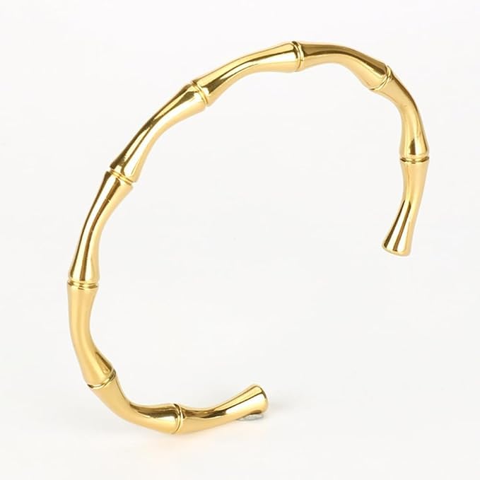 Generic - أساور حلقية بتصميم مستوحى من الخيزران ولون ذهبي / فضي، أساور حلقية مفتوحة أنيقة وبسيطة ورفيعة، سوار بوهو عريض كلاسيكي قابل للتعديل للنساء