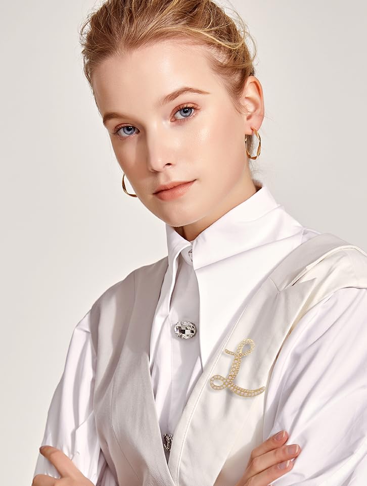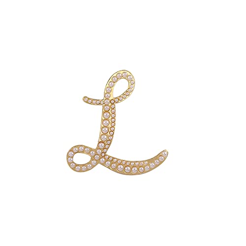 BELUCKIN - دبوس بروش ذهبي من اللؤلؤ الصناعي بالحروف الابجدية الاولية للنساء، مجوهرات هدايا للنساء، من الزنك واللؤلؤ