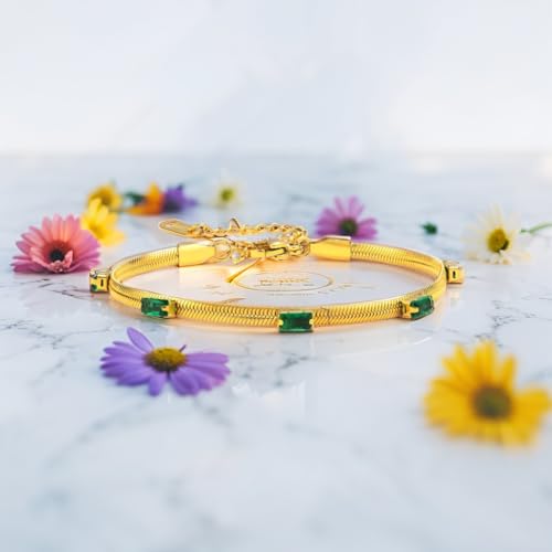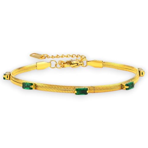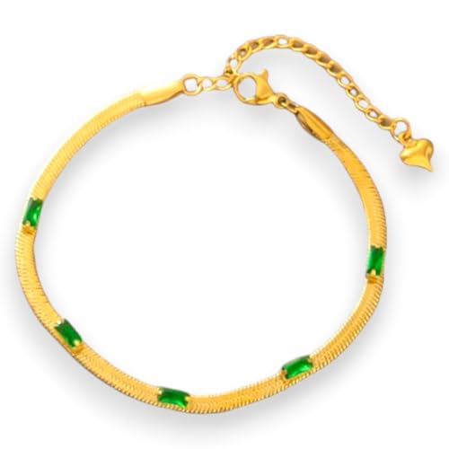 Generic - إسورة للنساء، مصنوعة من الستانلس ستيل المطلي بالذهب، بلون ذهبي وأخضر وتصميم عصري، مقاس قابل للتعديل