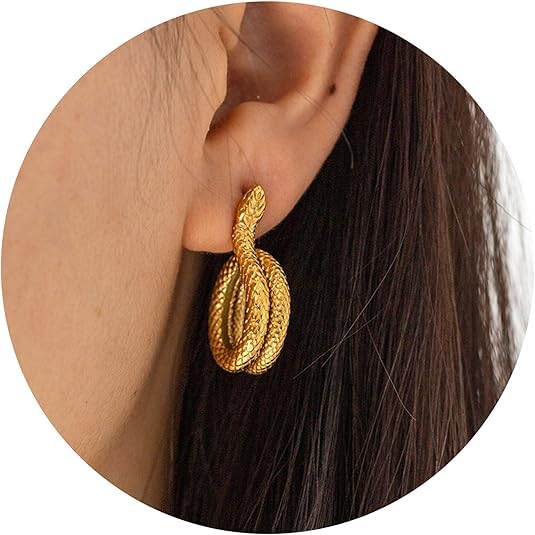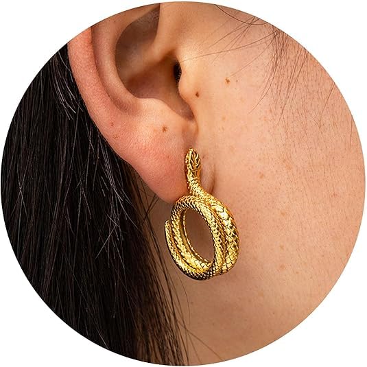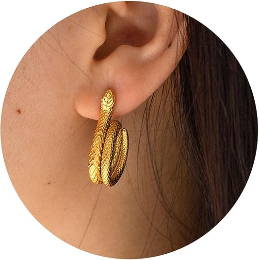 Generic - اقراط حلقية ذهبية على شكل ثعبان، مجوهرات عصرية مميزة، تصميم مزخرف