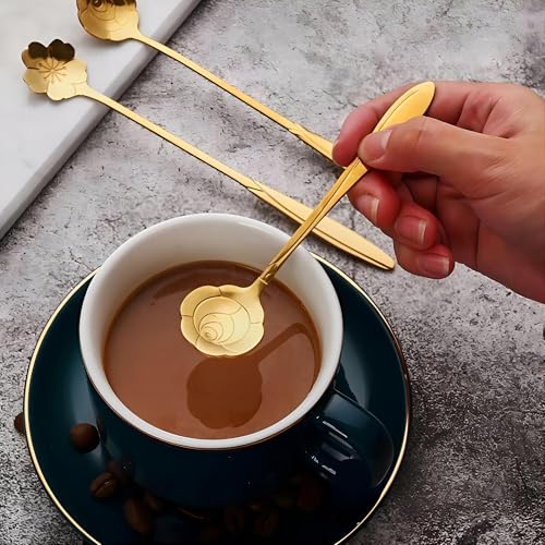 - ارتقِ بتجربة تناول الطعام الخاصة بك مع الملاعق الرائعة بتصميم زهور والمصنوعة من الفولاذ المقاوم للصدأ وهي مثالية لأي مناسبة. ملاعق الحلوى الذهبية هذه هي أكثر من مجرد أدوات المائدة؛ فهي تعبير عن الأناقة والتميز، وتحول الوجبة العادية إلى مناسبة خاصة، تجمع بين العملية والرقي في كل قضمة.