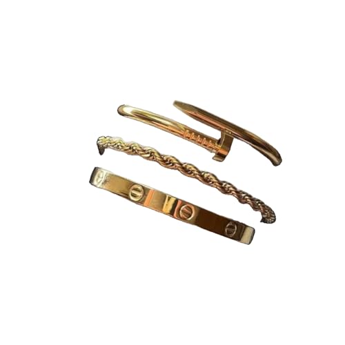 Generic - طقم انسيالات حريمي ستانلس ستيل ذهبي – 3 قطع بتصاميم عصرية