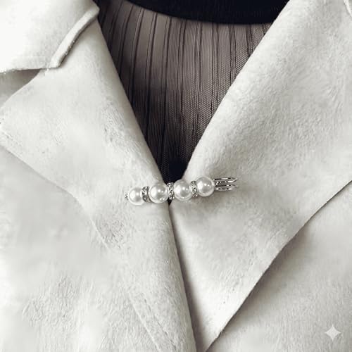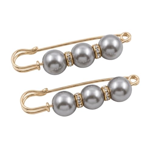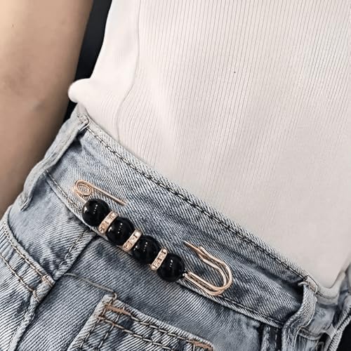Generic - طقم بروش ودبوس ستانلس ستيل ذهبي مرصع باللؤلؤ والكريستال (قطعتين) | مشبك لتضييق الخصر وتثبيت الملابس والحجاب | اكسسوار أنيق مقاوم للصدأ