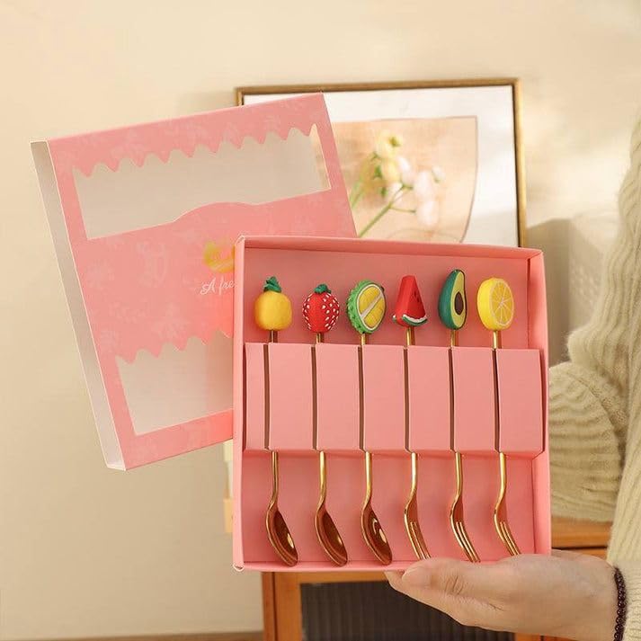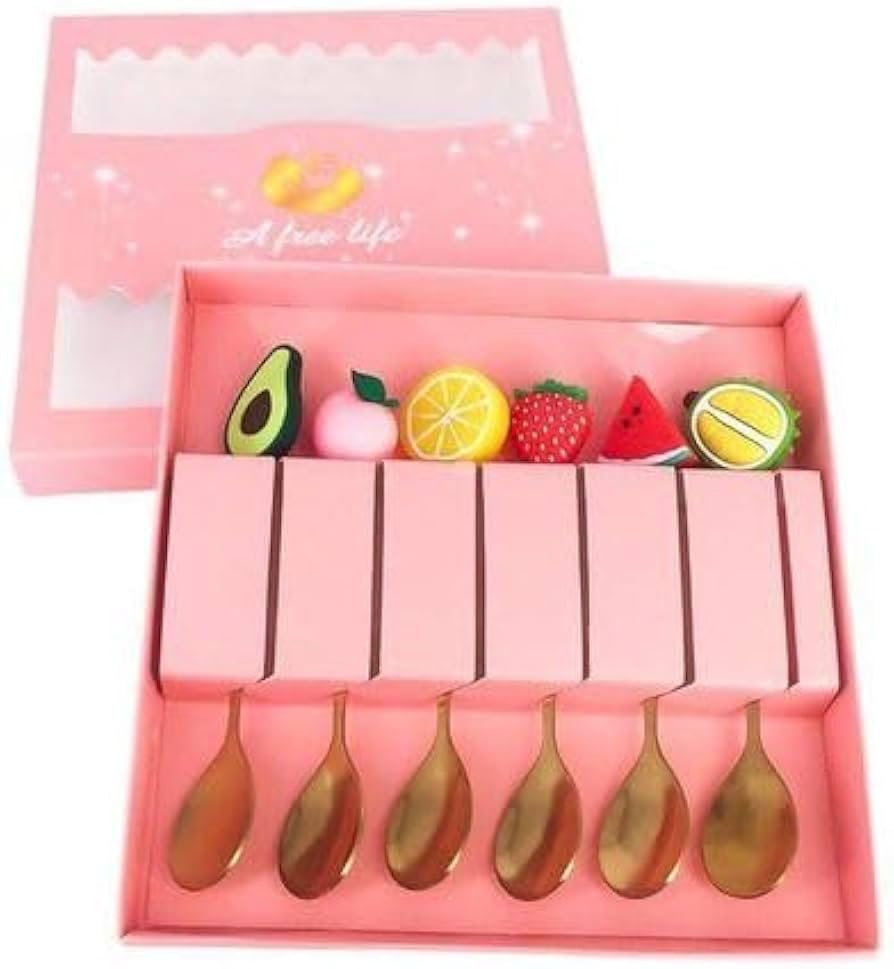 - مجموعة كاملة: طقم معالق مكون من ٦ قطع مصنوعة من الستانلس ستيل المطلي بالذهبي