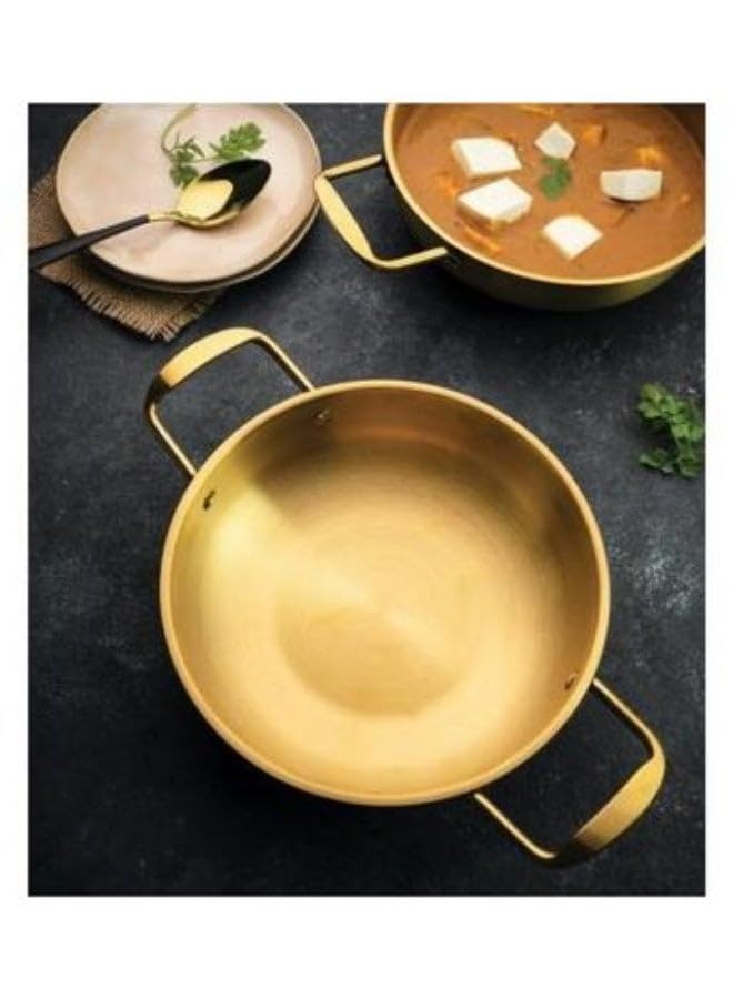 generic - مقلاة ذهبية من الستانلس ستيل، مقلاة عميقة غير لاصقة للقلي والتحميص والتقديم، مقاس S