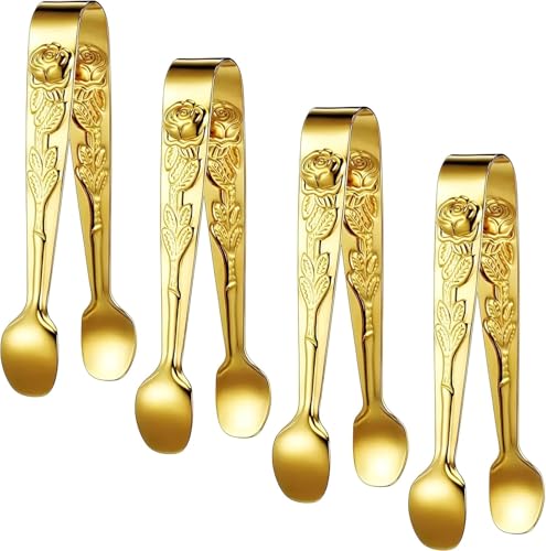 AREXOL - طقم ملاقط استانلس جولد ٤ قطع متعدد الاستخدام لتقديم السكر والثلج والحلويات والفواكه بطريقة عملية وأنيقة لكل المائدة والمطبخ