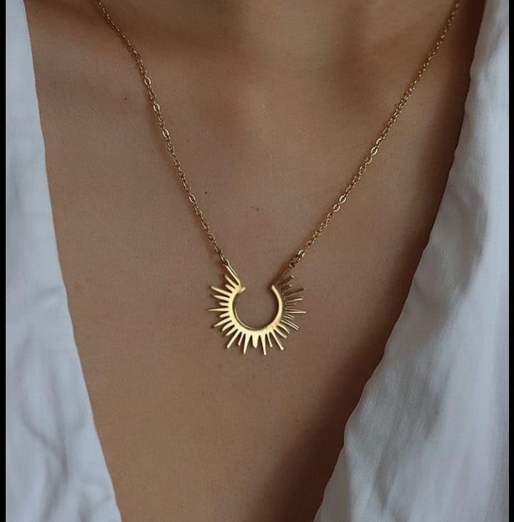 GOGO.EG - عقد بقلادة ذهبية بنمط صن برست، سلسلة رقيقة، تصميم هندسي، مجوهرات مميزة - YF1