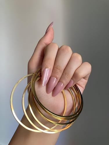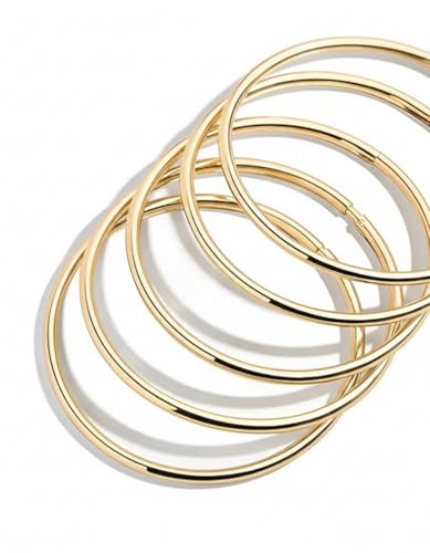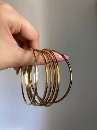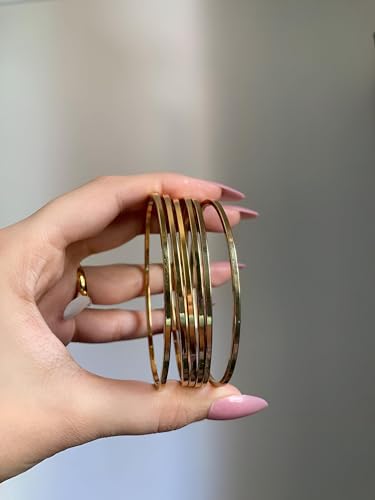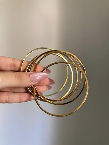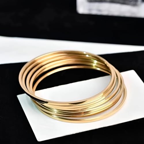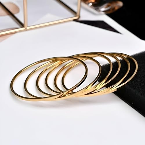 Generic - مجموعة اساور حلقية ذهبية اللون - 6 قطع اساور من الستانلس ستيل بلمسة نهائية مصقولة، مقاسات 60 و65، مصنوعة من الستانلس ستيل 316 عالي الجودة للمعان يدوم طويلا