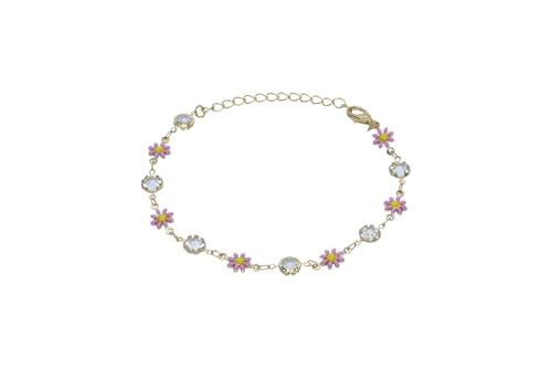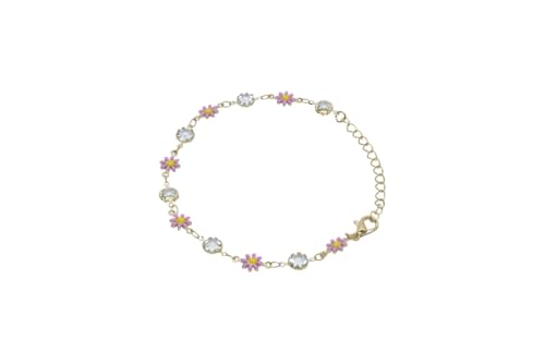 Generic - سوار سلسلة بتصميم زهرة الاقحوان بلون ذهبي مرصع بالكريستال والمينا للنساء - بينك