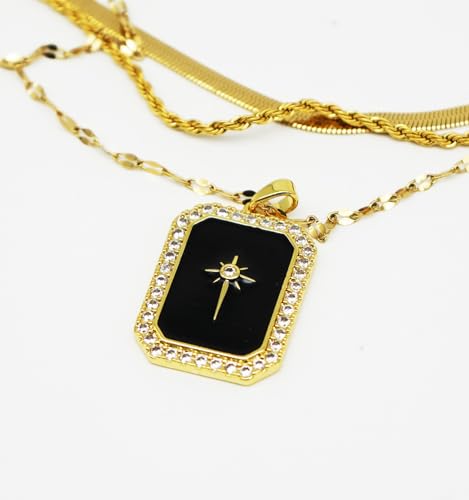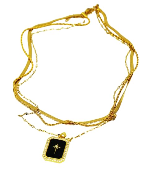 Generic - قلادة ذهبية اللون مع دلاية حجرية، تصميم متعدد السلاسل
