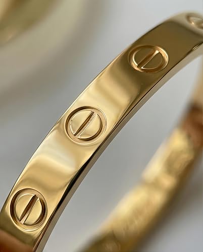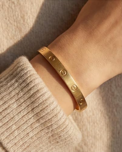 Rawnq - سوار حلقي بتصميم برغي ذهبي للنساء - سوار فاخر بسيط من الستانلس ستيل، مجوهرات انيقة للاستخدام اليومي