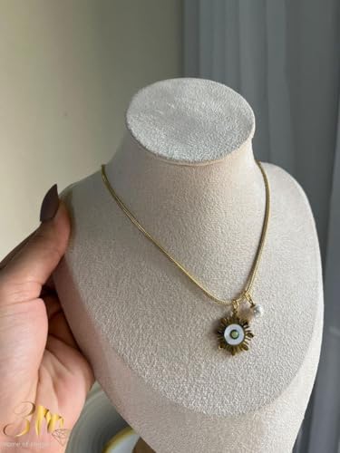 Generic - قلادة بدلاية على شكل زهرة عباد الشمس بلون ذهبي مع تعليقة نجمة كريستالية، سلسلة ثعبان