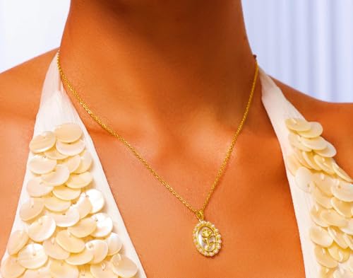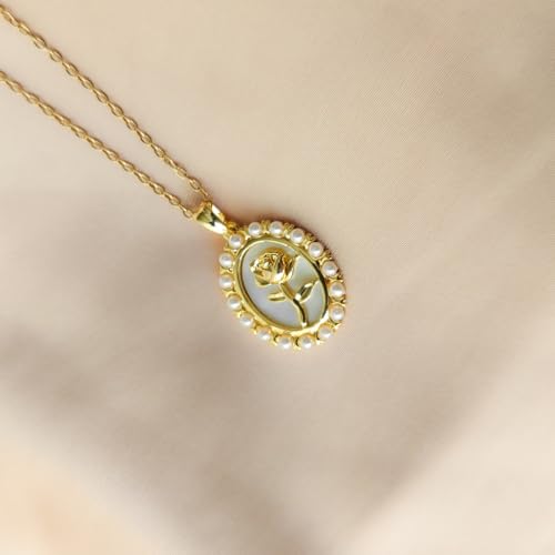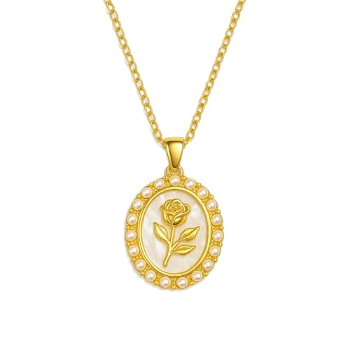 Generic - قلادة من الستانلس ستيل مطعمة بدلاية مزينة بلؤلؤ صغير بداخلها وردة التوليب الذهبية للنساء والبناتى