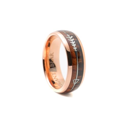 Elegant Bear - خاتم ذهبي من كربيد التنجستين مرصع بخشب الكوا الطبيعي A119